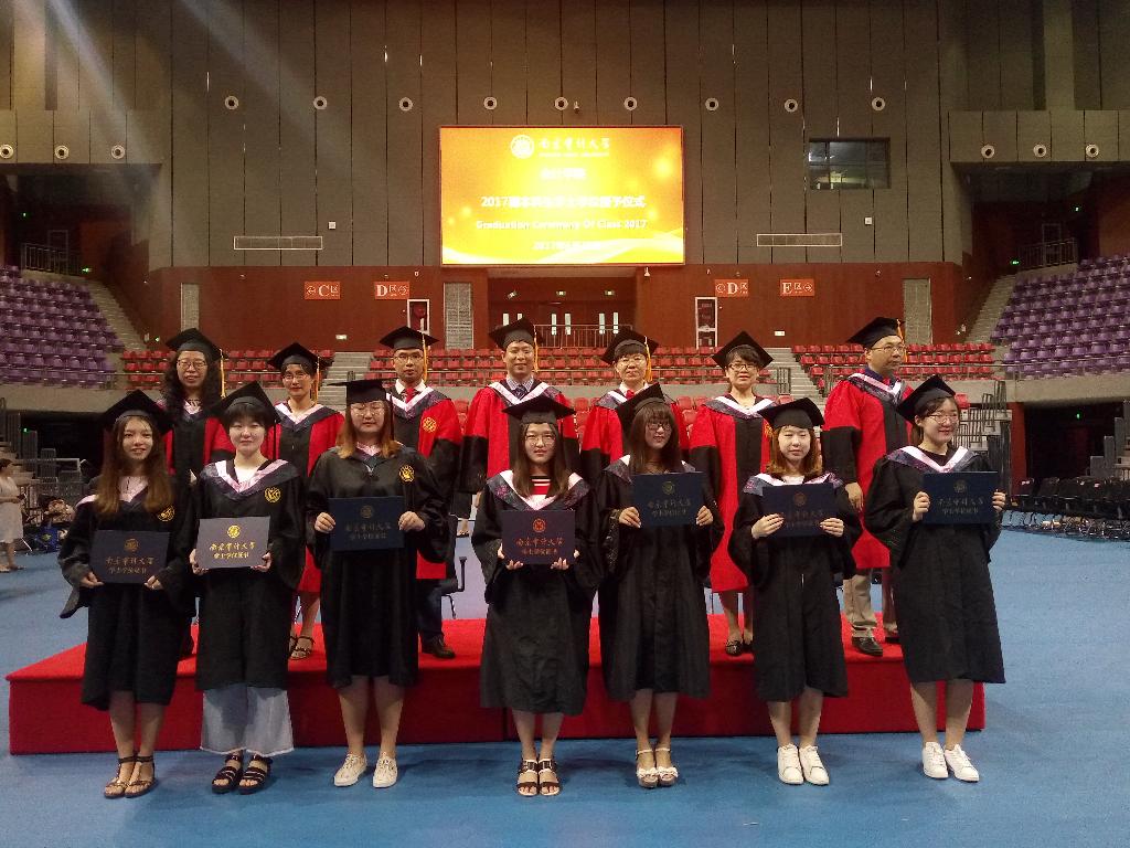 在悠扬的音乐声中,学院学位委员会的导师代表为毕业生们授予学位。毕业生身着学士服依次上场,鞠躬、握手,导师拨正学士帽上那缕流苏,毕业生双手捧过学位证书,转身、合影。在收获的喜悦、诚挚的祝福声中,云顶国际8588yd2017届本科毕业生学位授予仪式圆满结束。