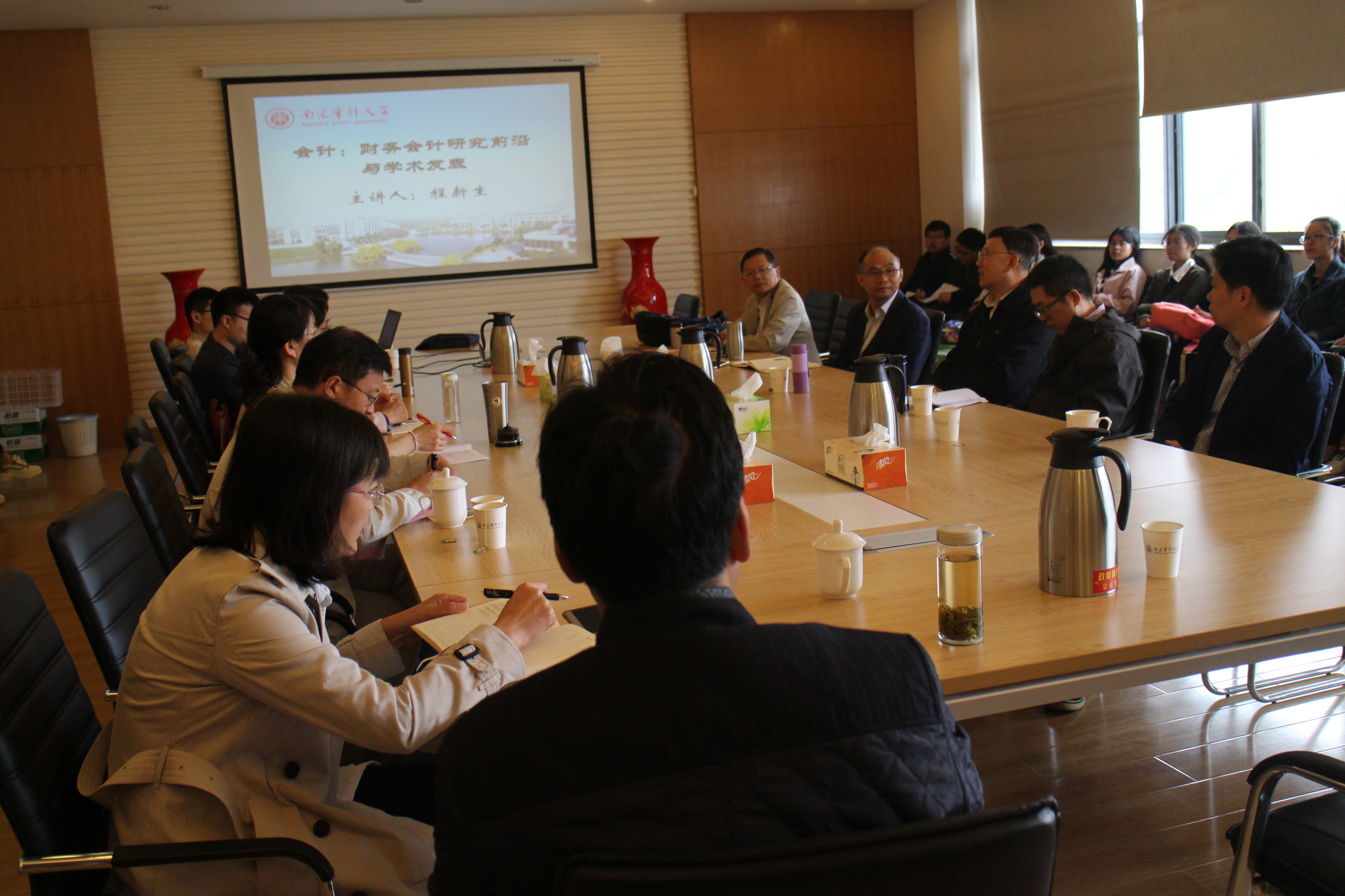 2018年10月16日上午,应云顶国际8588yd、政府审计学院邀请,南开大学博士生导师、《南开管理评论》副主编程新生教授来公司畅谈财务会计研究前沿、学术发展以及论文写作技巧。云顶国际8588yd经理殷俊明教授主持了本次讲座。
