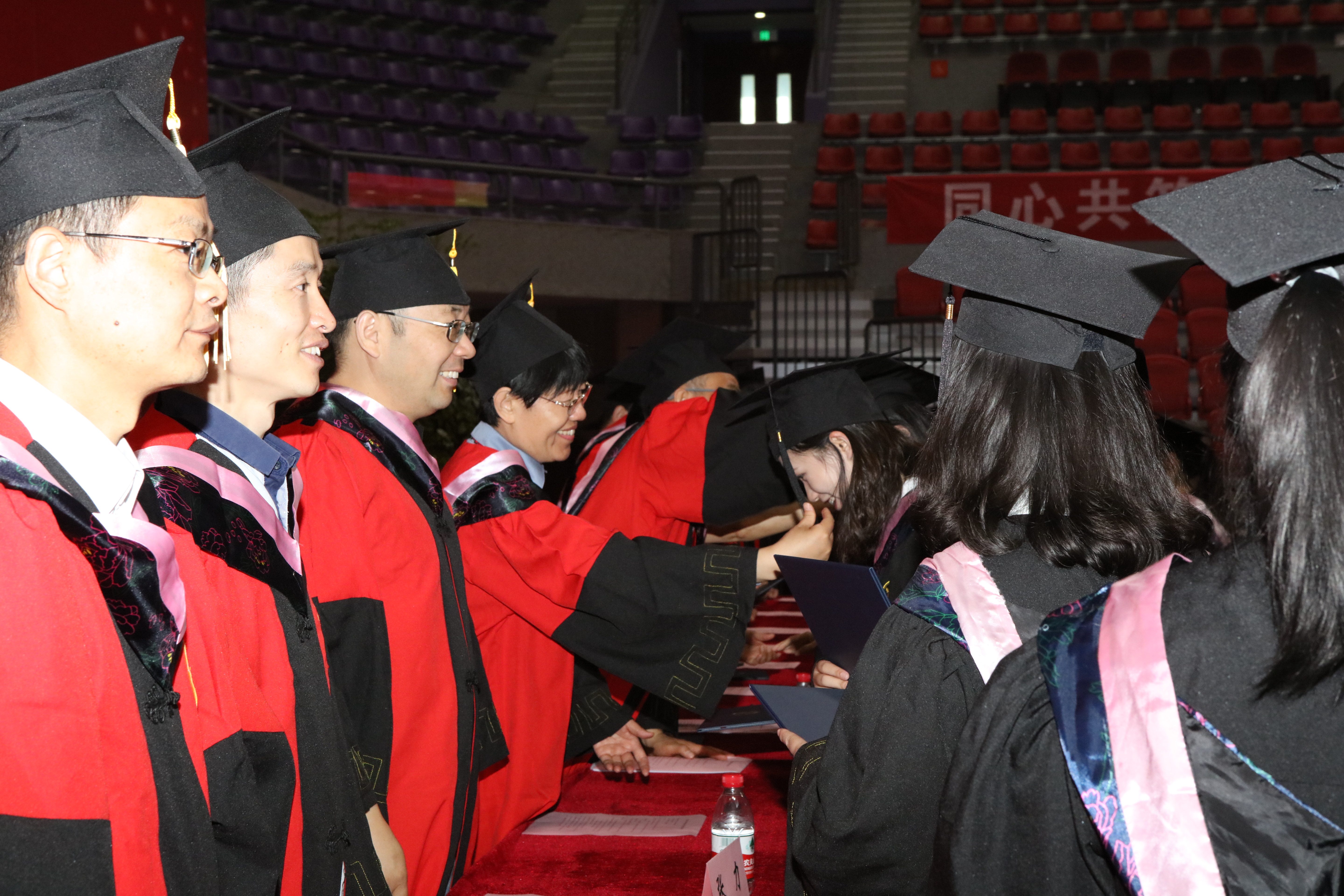接着,学院领导和学位评定分委会委员为优秀员工颁奖,并为所有获得学位的毕业生授予学位并合影留念。