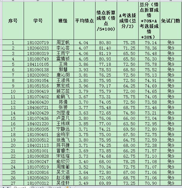 按照《ACCA九门免考规则》中的规定,现将18级给予免9资格的同学名单公示如下,公示时间9月12日-9月16日。请所有符合条件的同学在公示期结束之后2天之内,9月16日-9月17日下午4点前到敏知楼503办公室签字确认。如不按期确认,视为自动放弃免9资格。