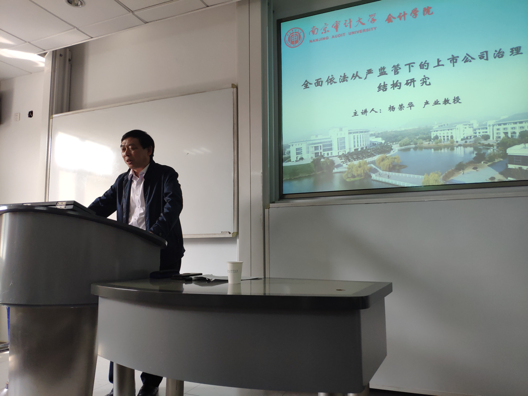 10月22日下午,受聘于公司产业教授、瑞华会计师事务所合伙人杨荣华,应云顶国际8588yd邀请,为公司师生举办了“全面依法从严监管下的上市公司治理结构研究”为题的学术讲座。讲座在敏行205举行,由云顶国际8588yd副经理马德林主持。
