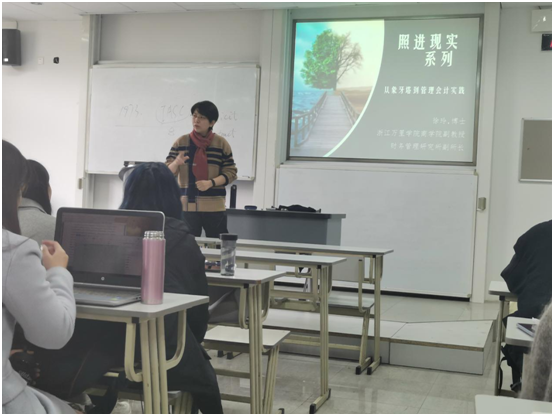 12月15日上午,浙江万里学院副教授徐玲应邀为云顶国际8588yd师生做了一场讲座,并以《照进现实系列:从象牙塔到管理会计实践》为题与同学们在敏行205进行了互动交流。讲座由云顶国际8588yd经理殷俊明教授主持。