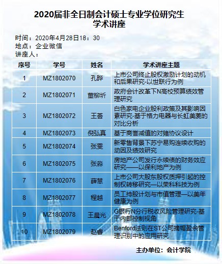 2020届非全日制会计硕士专业学位研究生学术讲座