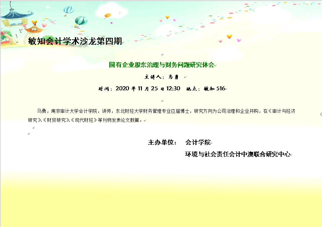 敏知会计学术沙龙第4期:马勇--国有企业股东治理与财务问题研究体会
