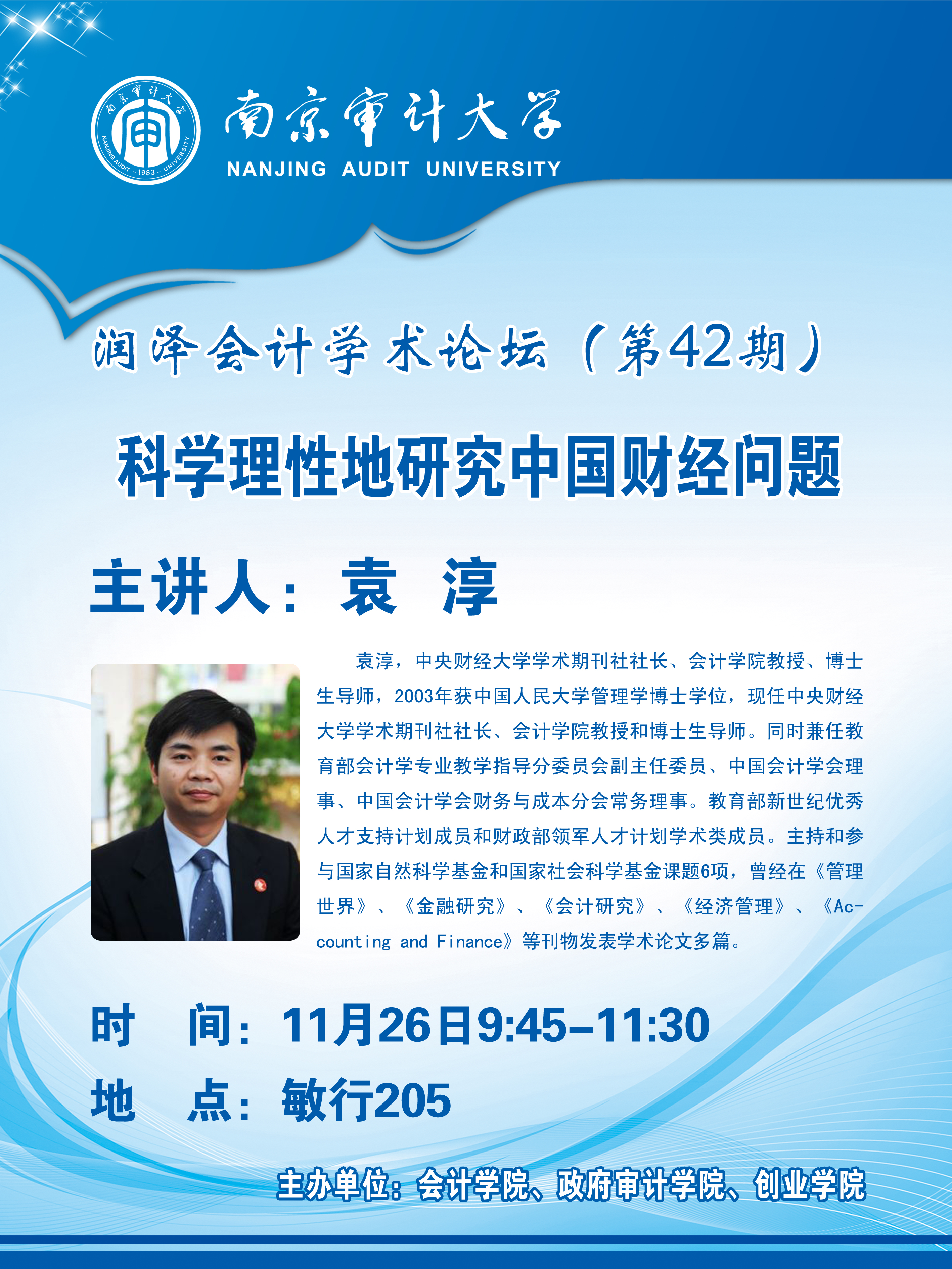润泽会计学术论坛第42期:袁淳--科学理性地研究中国财经问题