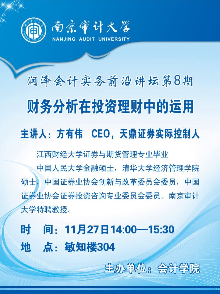 润泽会计实务前沿讲坛第8期:方有伟-财务分析在投资理财中的运用