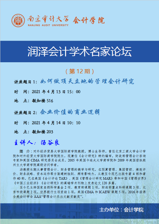 润泽会计学术名家论坛第12期:汤谷良-如何做顶天立地的管理会计研究/企业价值的商业逻辑