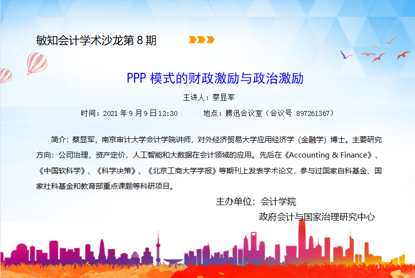 敏知会计学术沙龙第8期:蔡显军-PPP模式的财政激励与政治激励