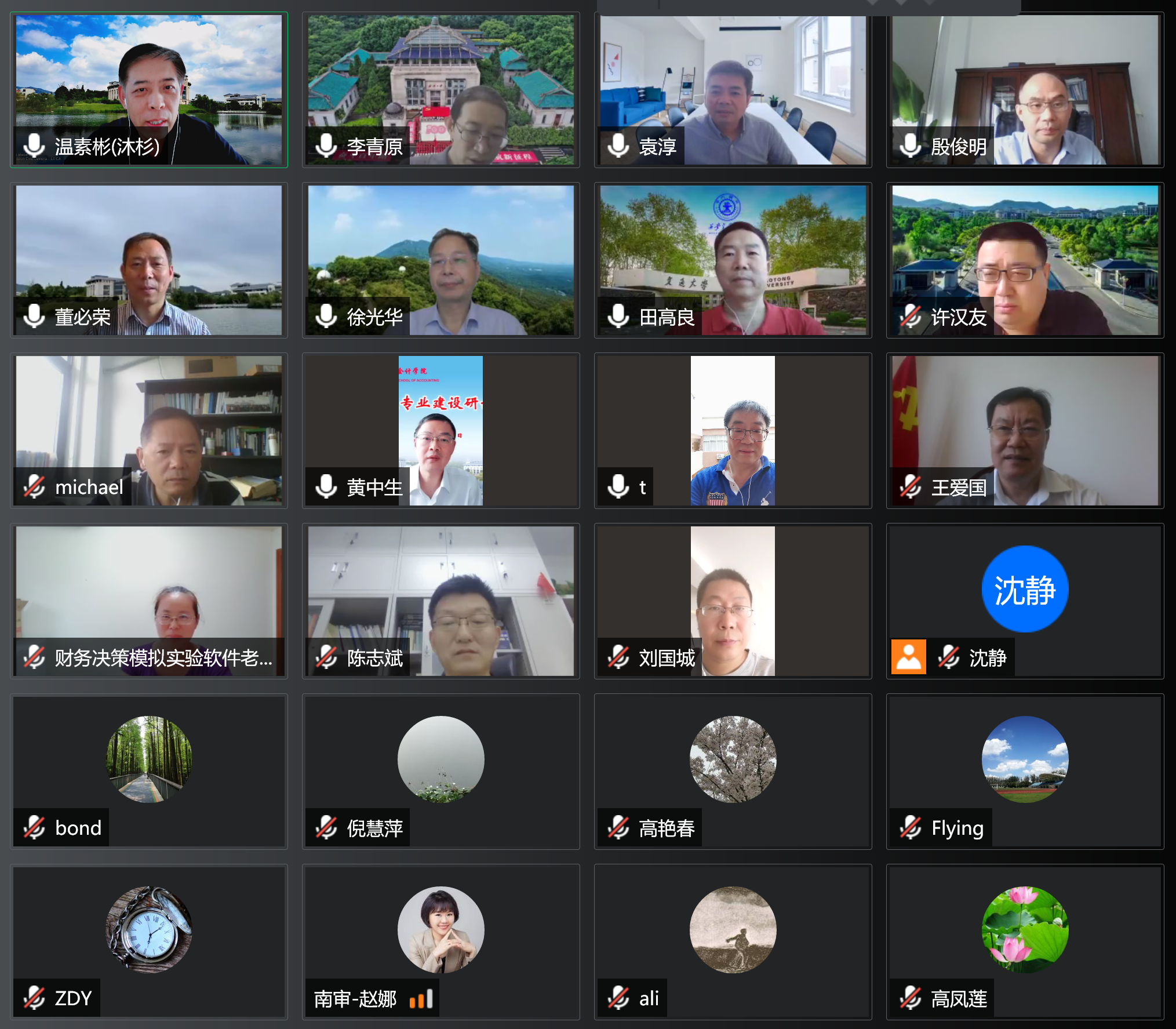 2021年9月8日,为了进一步加强国家一流专业建设点的建设和科学设置人才培养方案,不断提高人才培养质量,云顶国际8588yd召开一流本科专业建设研讨会,研讨会以线上形式进行。参加本次研讨会的专家学者有:教育部会计学专业教学指导委员会副主任委员、中央财经大学袁淳教授;教育部会计学专业教学指导委员会委员、中山大学谭劲松教授;教育部会计学专业教学指导委员会委员、西安交通大学田高良教授;教育部会计学专业教学指导委员会委员、东南大学陈志斌教授;教育部会计学专业教学指导委员会委员、武汉大学李青原教授;教育部会计学专业教学指导委员会委员、山东财经大学王爱国教授;南京理工大学徐光华教授。公司党委常委、副董事长董必荣教授和公司党委委员、教务处长苍玉权教授受邀出席会议,公司党委书记殷俊明,云顶国际8588yd经理温素彬,社会审计学院经理许汉友,全体院领导、教授、教师代表、教务工作人员共计50余人参会,会议由副经理黄中生主持。