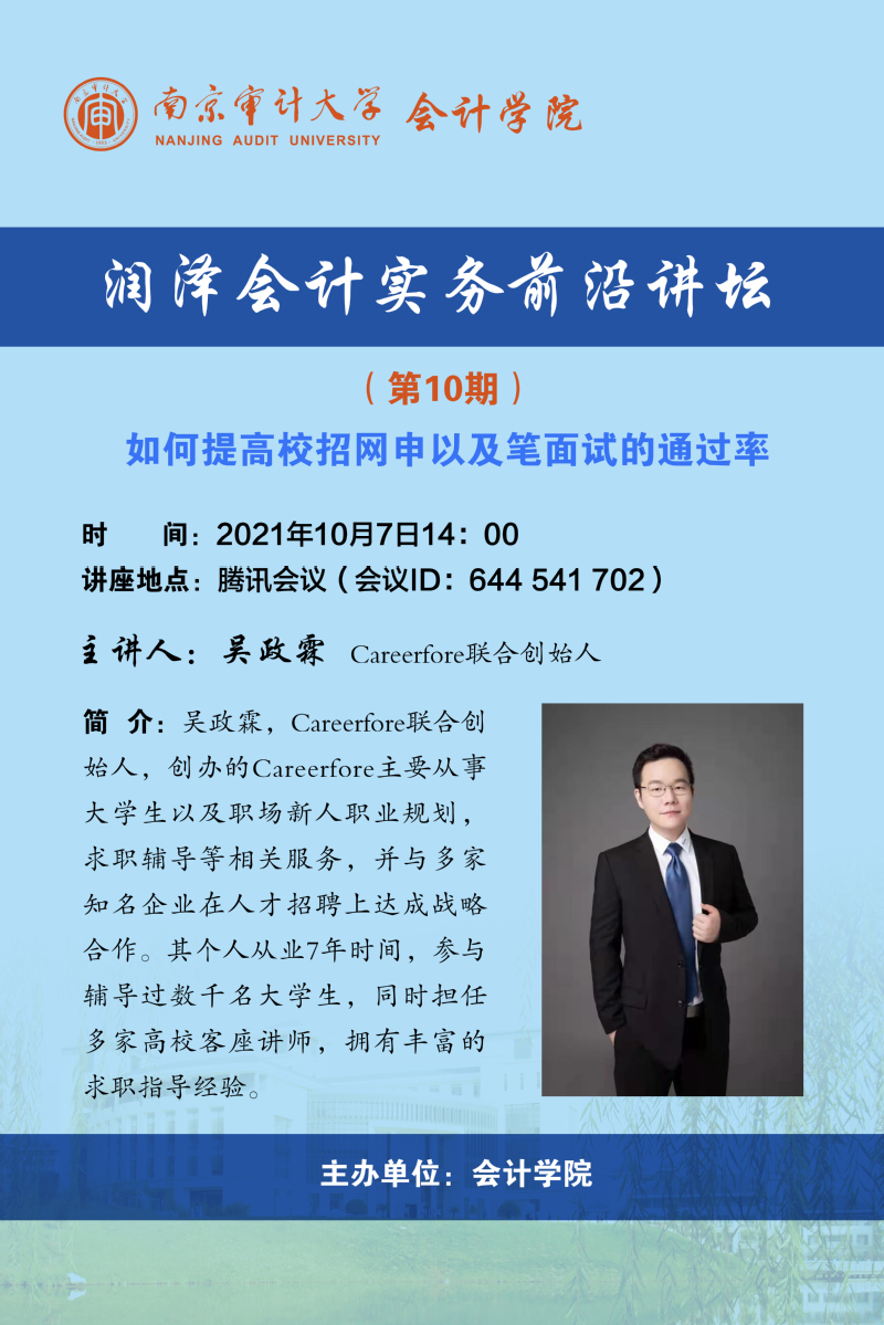 润泽会计实务前沿讲坛第10期:吴政霖-如何提高校招网申以及笔面试的通过率