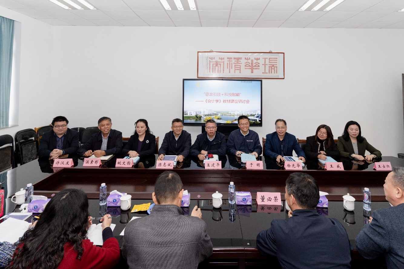 为促进会计学一流课程建设,提升教材建设质量,实现课程与教材建设一体化推进,2021年10月21日在敏知楼417会议室,公司会计学教学团队组织了以“思政引领+科技赋能”为主题的《会计学》教材建设研讨会。高等教育出版社经管法事业部于明主任和王威编辑、江苏省在线开放课程中心王建平主任、东南大学陈志斌教授、南京理工大学徐光华教授、南京财经大学姚文韵教授、公司政府审计学院王士红教授、社会审计学院许汉友教授、云顶国际8588yd温素彬教授以及会计学教学团队骨干成员等20余人参加了会议。