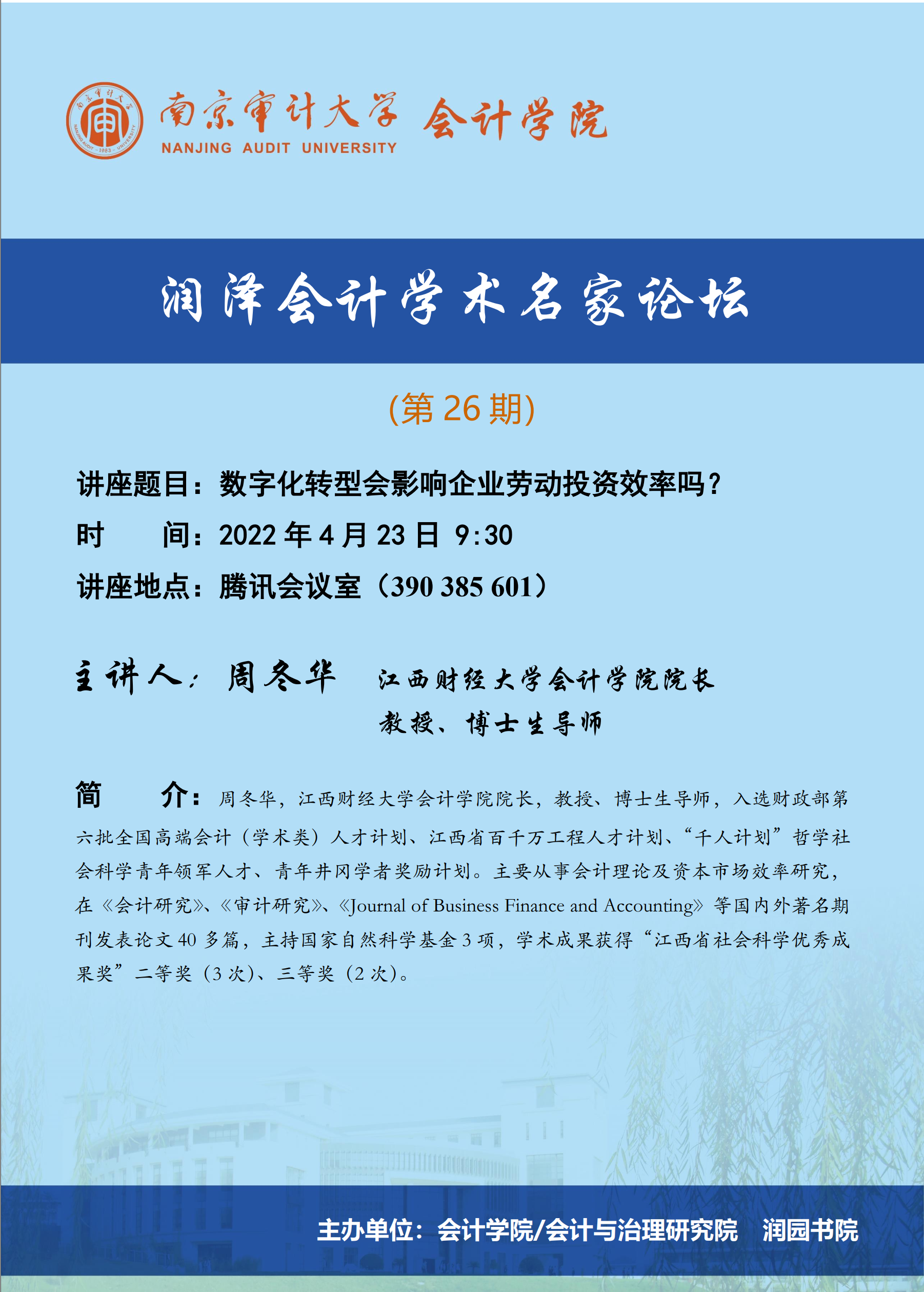 润泽会计学术名家论坛第26期:周冬华-数字化转型会影响企业劳动投资效率吗?