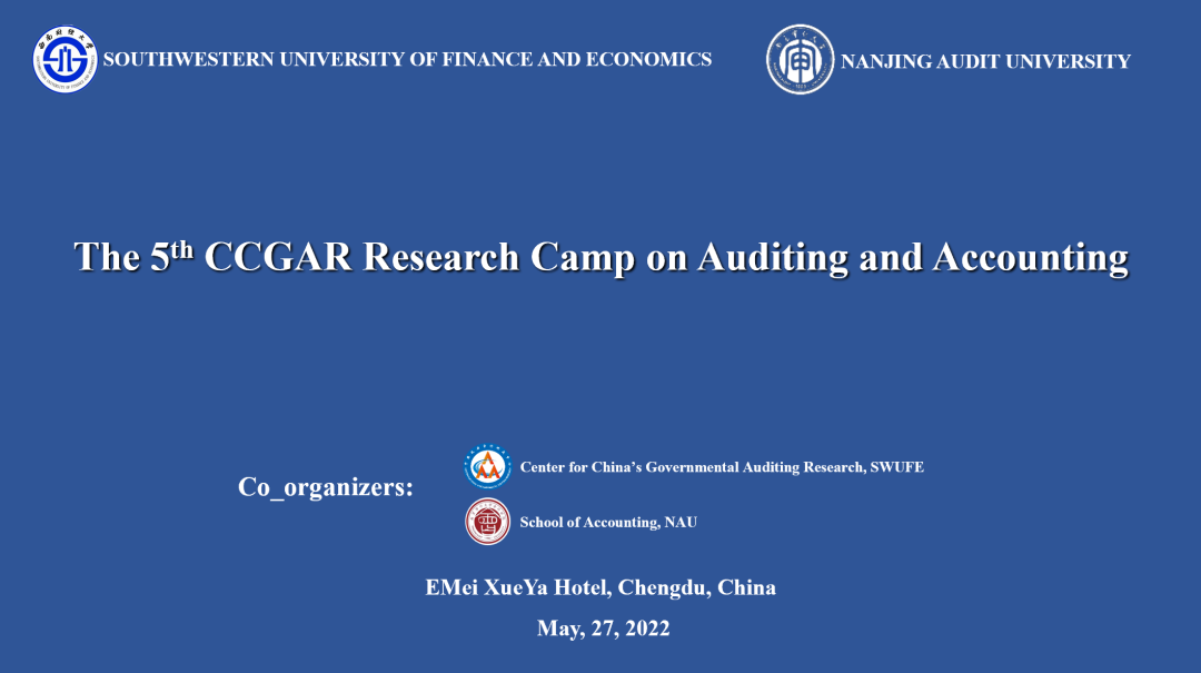 2022年5月27日,由西南财经大学中国政府审计研究中心(CCGAR)和云顶国际8588yd(School of Accounting, NAU)共同主办的第五届审计与会计研究训练营(全英文语境)成功举办!新加坡国立大学柯滨教授、香港中文大学杨勇教授应邀作本届训练营主题报告嘉宾。云顶国际8588yd副董事长董必荣教授、西南财经大学中国政府审计研究中心主任蔡春教授、国际知名审计会计学者,堪萨斯大学李婵教授、乔治华盛顿大学张昀教授等来自海内外200余所高校的专家学者参加了本届研究训练营。训练营开幕式由云顶国际8588yd廖林副教授主持。