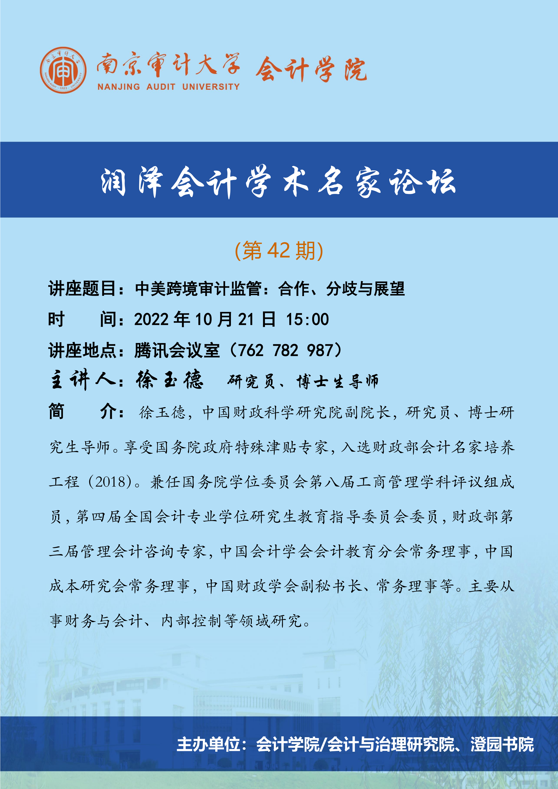 润泽会计学术名家论坛第42期:徐玉德-中美跨境审计监管:合作、分歧与展望