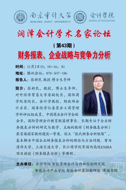 润泽会计学术名家论坛第43期:张新民-财务报表、企业战略与竞争力分析