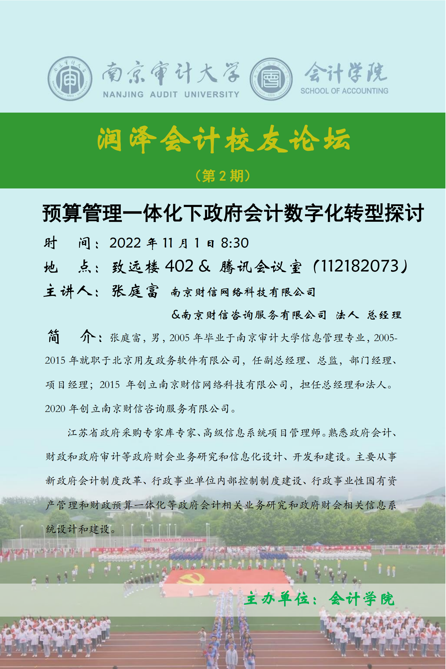 润泽会计员工论坛第2期 :张庭富-预算管理一体化下政府会计数字化转型探讨