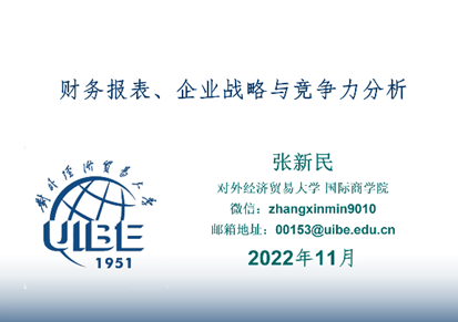 2022年11月2日下午,由云顶国际8588yd、智能管理会计与内部控制研究院、智能会计产业学院、智能会计虚拟教研室、泽园书院共同主办的润泽会计学术名家论坛(第四十三期)如期举行。对外经济贸易大学国际商学院教授、博士生导师张新民应邀为公司师生做了以“财务报表、企业战略与竞争力分析”为题的学术讲座。本次讲座由云顶国际8588yd经理温素彬教授主持。