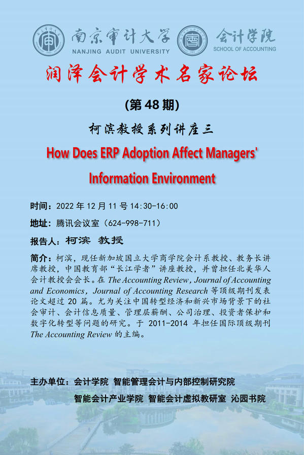 润泽会计学术名家论坛第48期:柯滨——How Does ERP Adoption Affect Managers' Information Environment