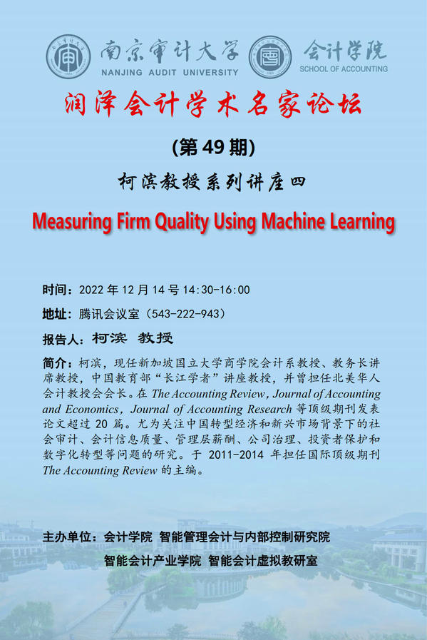 润泽会计学术名家论坛第49期:柯滨——Measuring Firm Quality Using Machine Learning