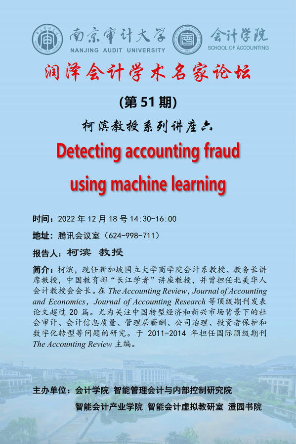 润泽会计学术名家论坛第51期:柯滨——Detecting accounting fraud using machine learning