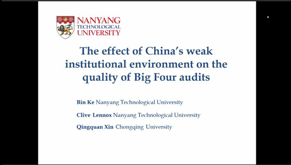 12月10日的第二次讲座中,柯滨介绍了论文The Effect of China's Weak Institutional Environment on the Quality of Big Four Audits的整体框架,并以此为切入点分享怎样进行专业学术写作,在梳理文章各部分框架的同时,具体讲了怎样进行论文选题,怎样进行研究设计,想法形成的过程,怎样进行假设,得出的结果怎样进行科学解读。并强调了科研能力的重要性,希望同学们通过此次讲座受到启发,未来运用科学方法做更有影响,更有创新性的研究。