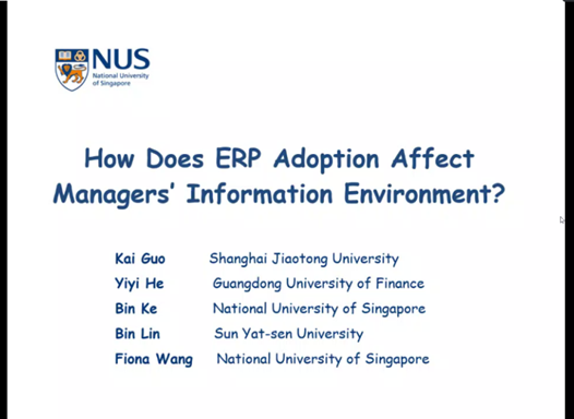 12月11日的第三次讲座上,柯滨首先介绍了研究How Does ERP Adoption Affect Managers’ Information Environment这一课题的原因,之后以最新相关的外文文献为切入点对自己的行文思路和具体细节进行了详细阐述,重点强调了信息系统和智能会计的可研究性和重要性。ERP是目前国内企业采纳使用最广泛的ICT技术,他认为ERP的采用能很好地改善公司内部信息环境,给决策者们提供更准确的信息依据。经过描述性统计、重复性检验和回归分析,最终发现长期采用ERP对公司的优势十分明显。