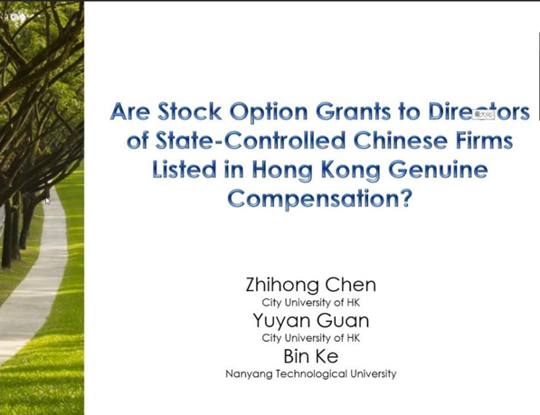 12月17日,在讲座主题为Are Stock Option Grants to Directors of State-Controlled Chinese Firms Listed in Hong Kong Genuine Compensation的学术报告中,柯滨介绍了本次所讲论文的底层逻辑,即如何感知到事物背后无形的东西,去了解现象背后的原理。第一要观察现实问题来思考研究话题,第二要思考如何把现实话题一步一步的研究出来,第三需要“顶天立地”。“顶天”即找到好的理论支撑,细致的科学论证,发现已有文献还未发现的规律,“立地”即进行现场调研与访谈,不能仅仅只是寻找网上数据。