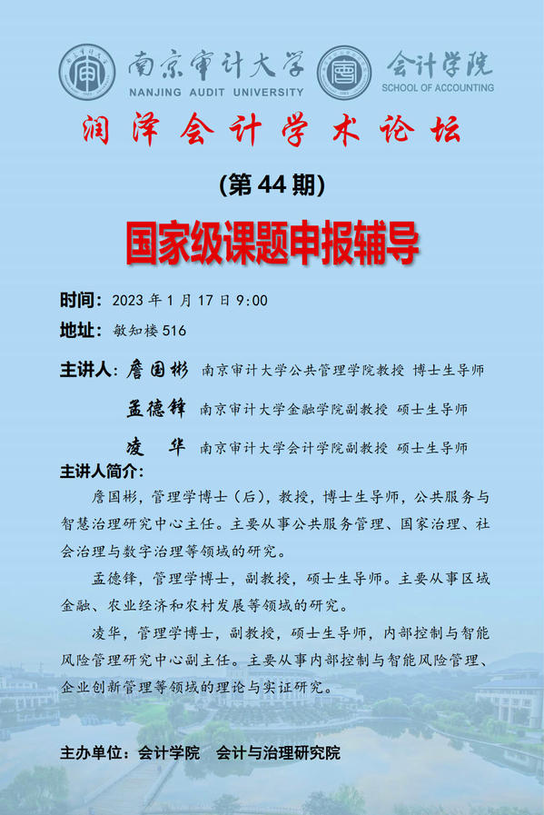 润泽会计学术论坛第44期:詹国彬、孟德锋、凌华——国家级课题申报辅导