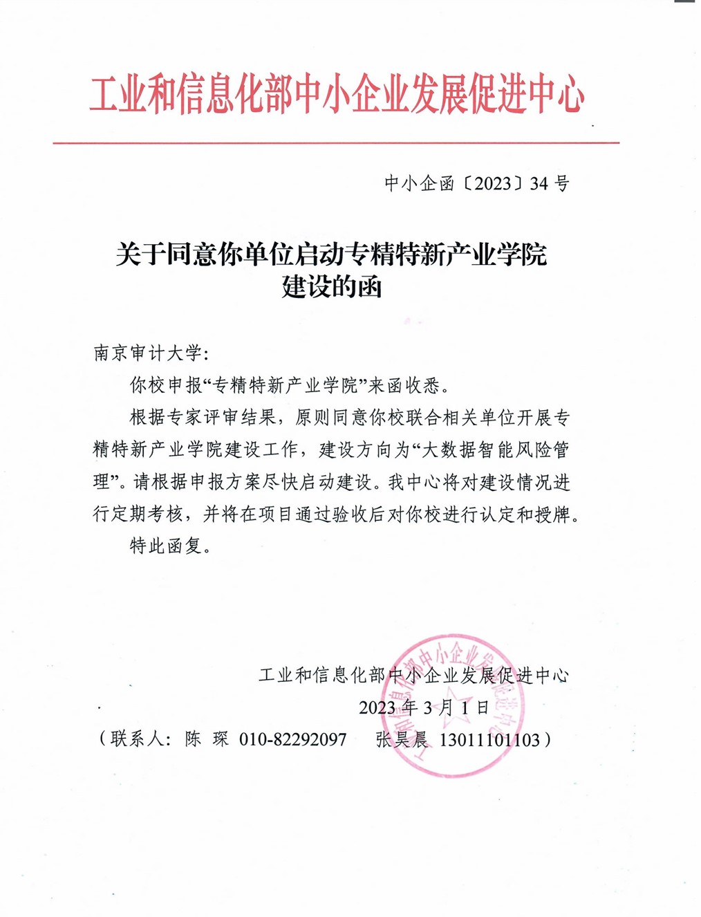 近日,接工信部中小企业发展促进中心的函(中小企函〔2023〕34),由公司联合深圳市迪博企业风险管理技术有限公司、南京新港国家高新技术产业园申报的“专精特新产业学院”获批建设,建设方向为“大数据智能风险管理”,这是公司获批的首个省部级产业学院,在省部级产业学院取得了新突破。