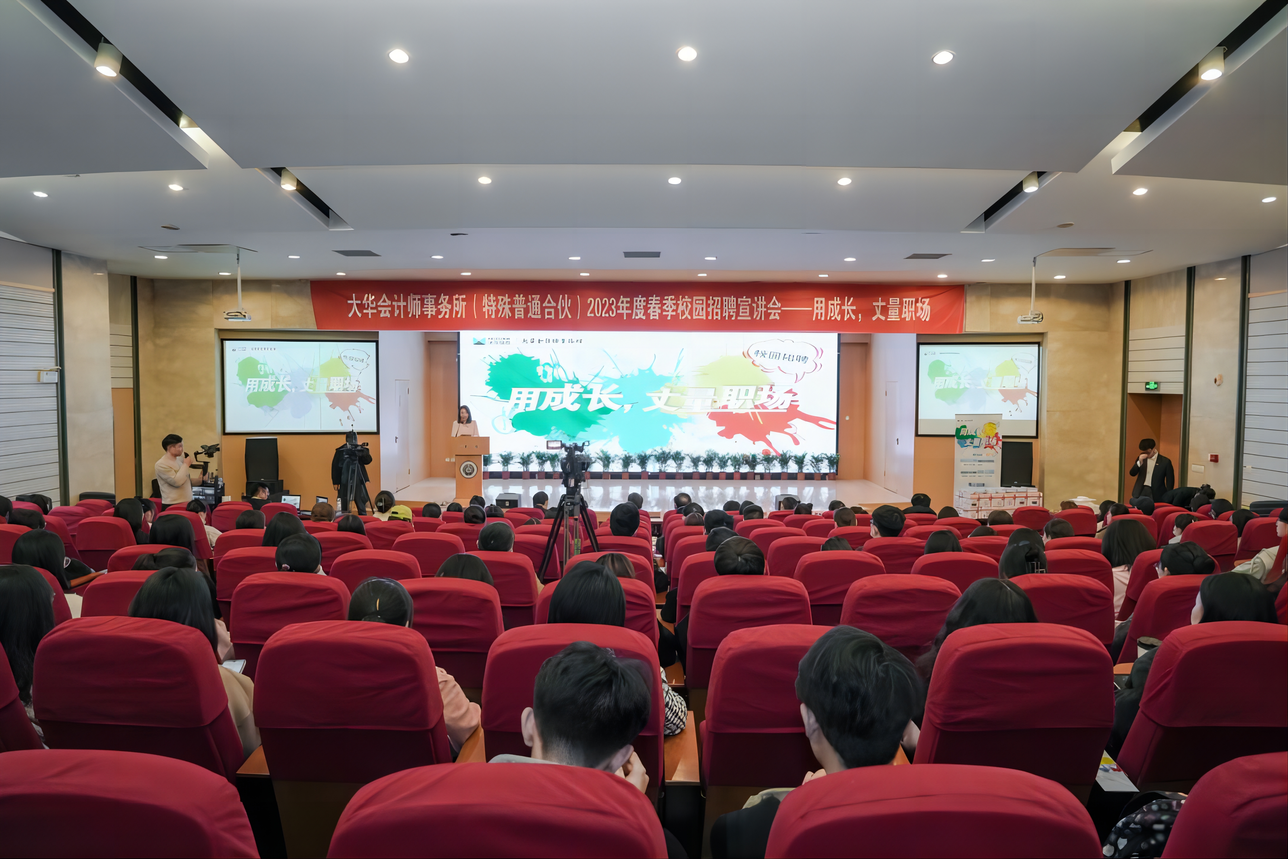 会上,在大家的共同见证下,大华会计师事务所授予云顶国际8588yd“英才计划院校——英才大本营”荣誉牌匾;同学们还围绕专业实习和就业需求,与大华会计师事务所的招聘团队进行了热烈的互动交流。