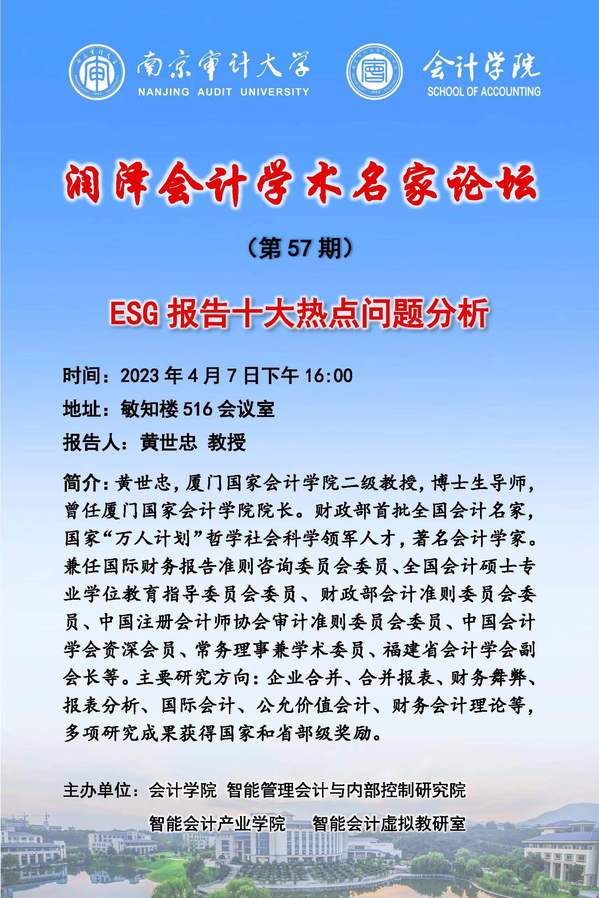 润泽会计学术名家论坛第57期:黄世忠——ESG 报告十大热点问题分析