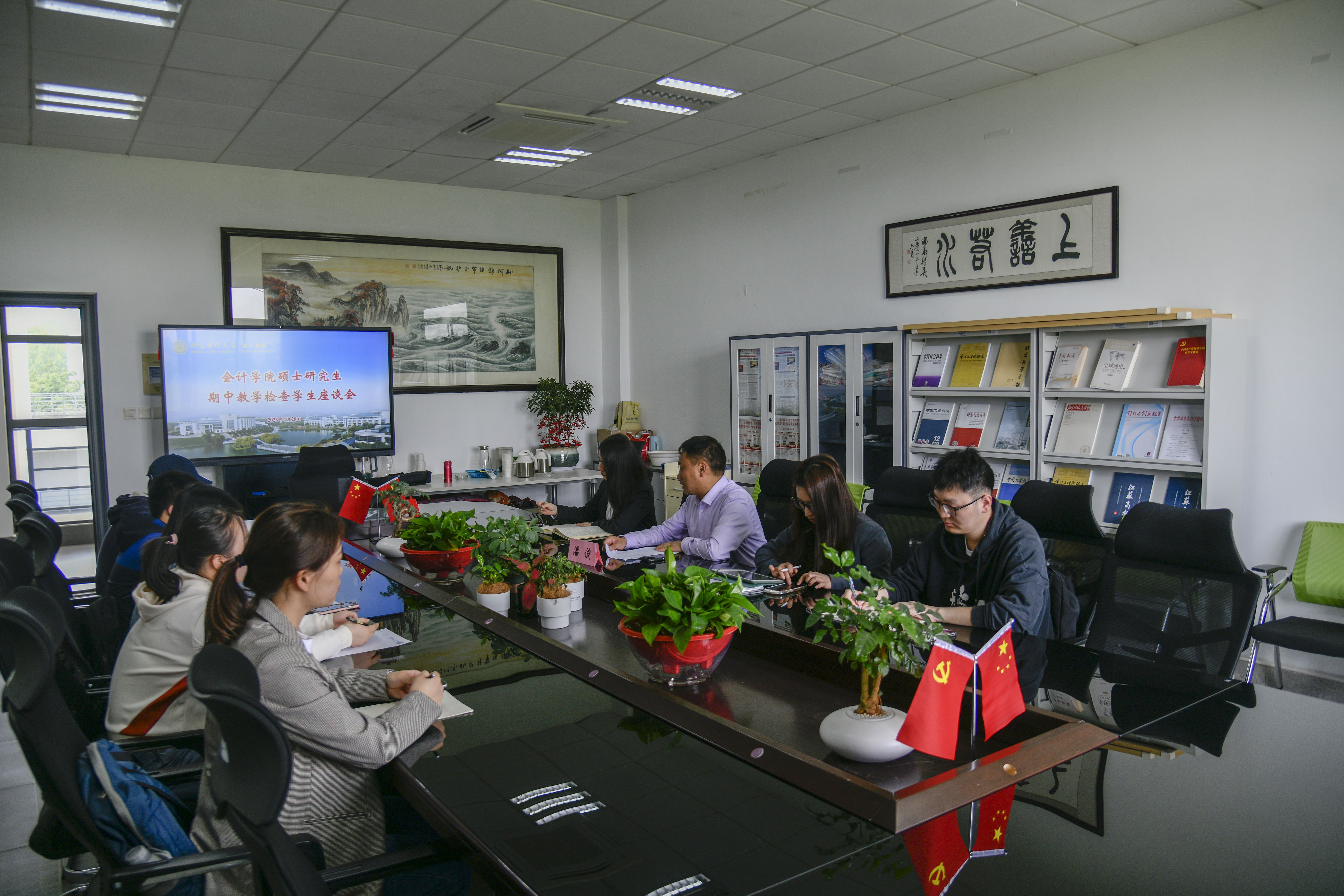 座谈会上,2020级会计学,2021、2022级会计学、会计硕士研究生代表踊跃发言,各抒己见。2022级研一员工代表介绍了自身学业与科研的进展,并从课程设置、授课方式、案例教学情况等方面提出意见与建议;2021级会计学研究生代表的发言围绕社会实践、中期考核与开题报告的进度,分享近期参加学术论坛、科研竞赛和江苏省研究生科研与实践创新计划项目的进展与成果。2020级会计学和2021级会计硕士研究生作为2023届研究生代表,汇报了近期学位论文提交盲审与评阅意见、毕业教学材料提交等事宜的推进进度,并分享研究生阶段的课程学习、社会实践、博士研究生备考和就业的经验。现场气氛轻松融洽,活跃热烈,对于研究生代表提出的问题与建议,与会的各位老师认真倾听、详细记录,并与研究生代表进行了沟通交流。