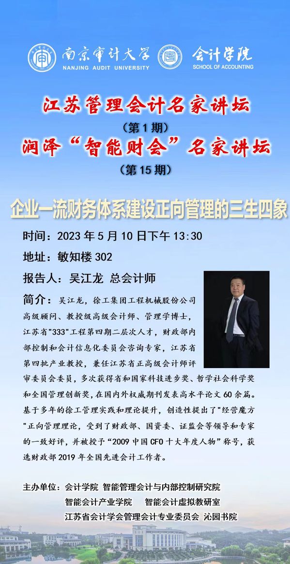 江苏管理会计名家讲坛(第1期):吴江龙——企业一流财务体系建设正向管理的三生四象