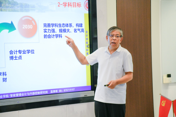 与会人员热烈讨论会计学科发展的未来规划,表示将以工商管理一级学科博士点建设为契机,努力打造会计专业学位博士点,不断完善会计学科生态体系,构建实力强、规模大、名气高的会计学科。