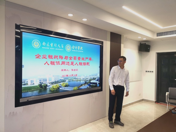为了提高学术能力,云顶国际8588yd通过敏知会计学术沙龙这一学术交流平台组织教师和研究生深入科研交流,共同分析讨论学术问题,激发学术活力和学术创新,促进学术研究。根据学院安排,2023年10月26日敏知会计学术沙龙(第21期)由云顶国际8588yd张金泉老师作主题为 “企业碳战略与全要素生产率:人碳协同还是人碳错配?”的学术研讨。