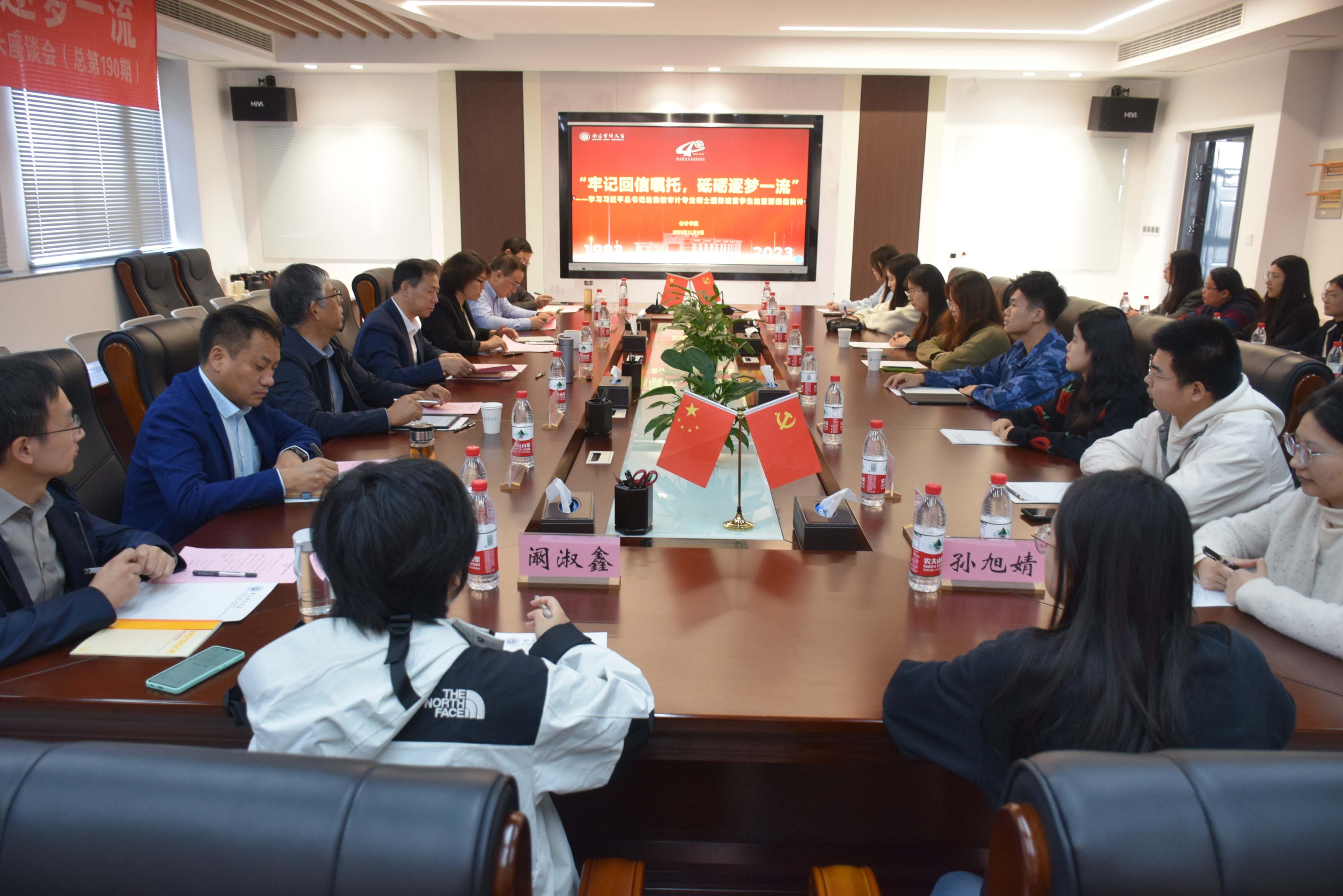 在审大建校四十周年之际,云顶国际8588yd审计专业硕士国际班的同学们收到了习近平总书记的回信,令审大全体师生倍感激动与鼓舞。为进一步学习贯彻习近平总书记重要回信精神,11月8日中午,公司党委副书记、董事长董必荣来到云顶国际8588yd与师生代表在敏知楼516会议室开展“牢记回信嘱托,砥砺逐梦一流”主题座谈会,本次座谈会也是2023年第13期书记董事长座谈会。校团委书记、澄园书公司党委书记杨放敏,云顶国际8588yd经理温素彬,副经理黄中生,副书记、副经理潘俊,国际合作专项工作经理助理周达勇以及学院本科生、研究生代表参加座谈。座谈会由公司党委书记吴春梅主持。