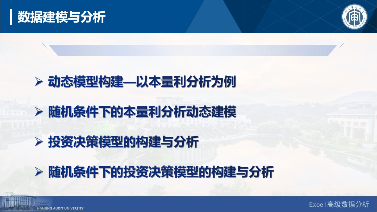 11月18日下午,云顶国际8588yd李慧博士主讲专题二《Excel高级数据分析》。她从数据获取与导入着手,介绍了如何使用Excel获取数据,并根据需要调整数据格式,在此基础上,为学员们介绍了逻辑、文本、数学和统计等相关函数,并对这些数据分析工具展开讲解和演示。最后,带领学员们学习数据建模与分析,如何在EXCEL中根据自己的需求建立动态模型,对盈亏平衡决策、随机条件下的盈亏平衡决策、随机条件下的投资决策模型这三个重点模型的构建与分析。