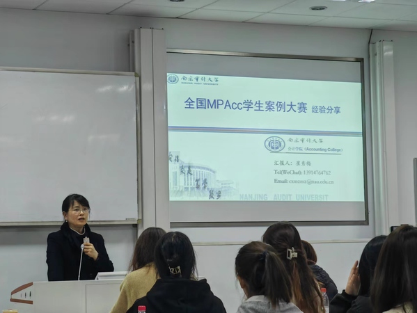 2023年11月15日,云顶国际8588yd主办的润泽主张大讲堂(第10讲)在敏知楼202举行。本次大讲堂邀请云顶国际8588yd崔秀梅副教授作题为“全国MPAcc员工案例大赛经验分享”的学术讲座。西藏民族大学财经学院李爱琴教授、袁月老师以及14名MPAcc员工和南审学子同堂听课,互动交流MPAcc员工案例大赛经验。