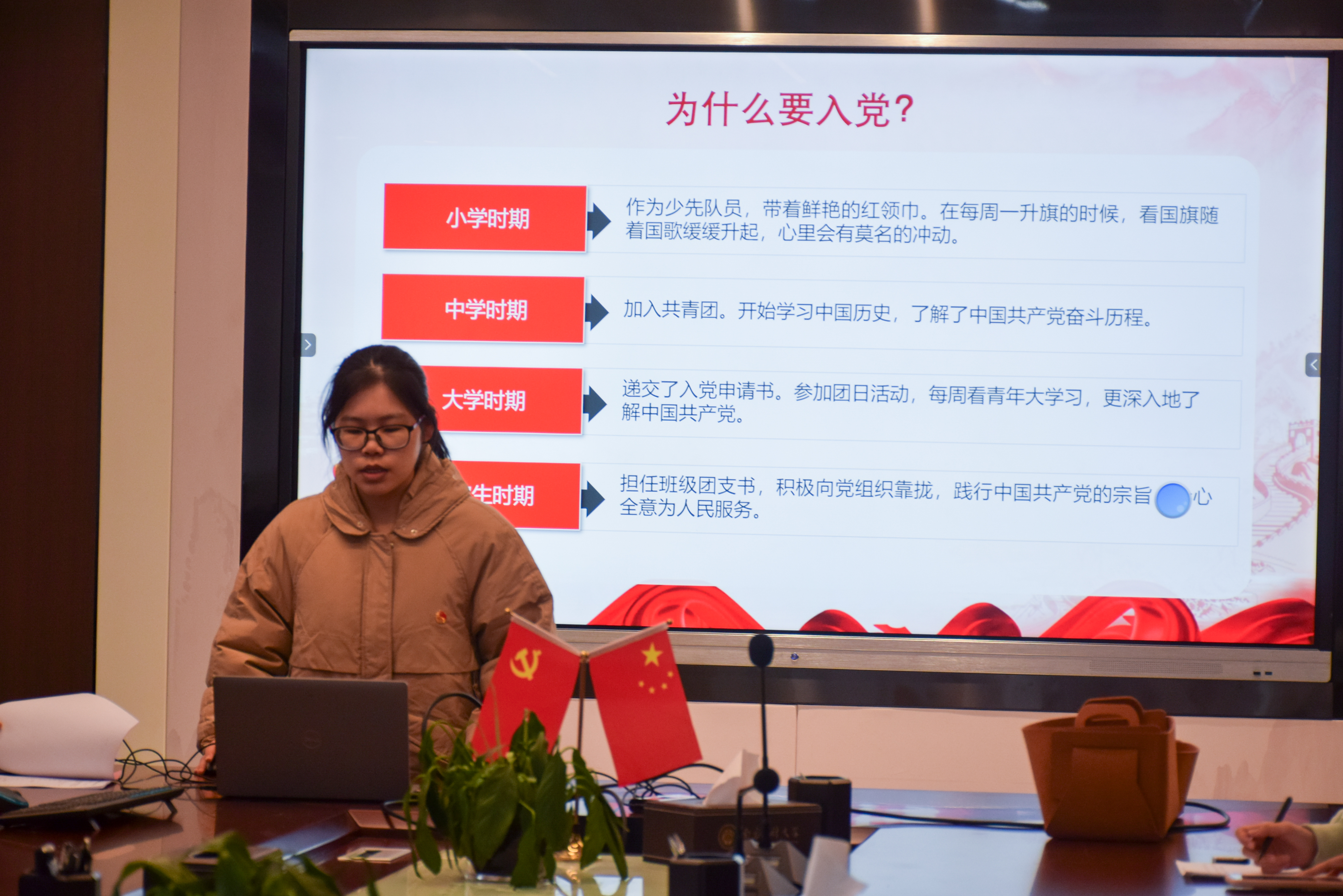 为深入贯彻党的二十大精神,进一步做好党员发展和教育工作,保证新发展的党员质量,12月20日下午,公司党委以线上线下相结合方式在敏知516召开2023年重点发展对象入党答辩会。党委书记吴春梅、学科与研究生办公室主任王莹、教务办孟雨晴、研究生辅导员肖艳、研究生第一党支部副书记吴冠泽、纪检委员文灿以及21位研究生重点发展对象参加答辩会,会议由吴冠泽主持。