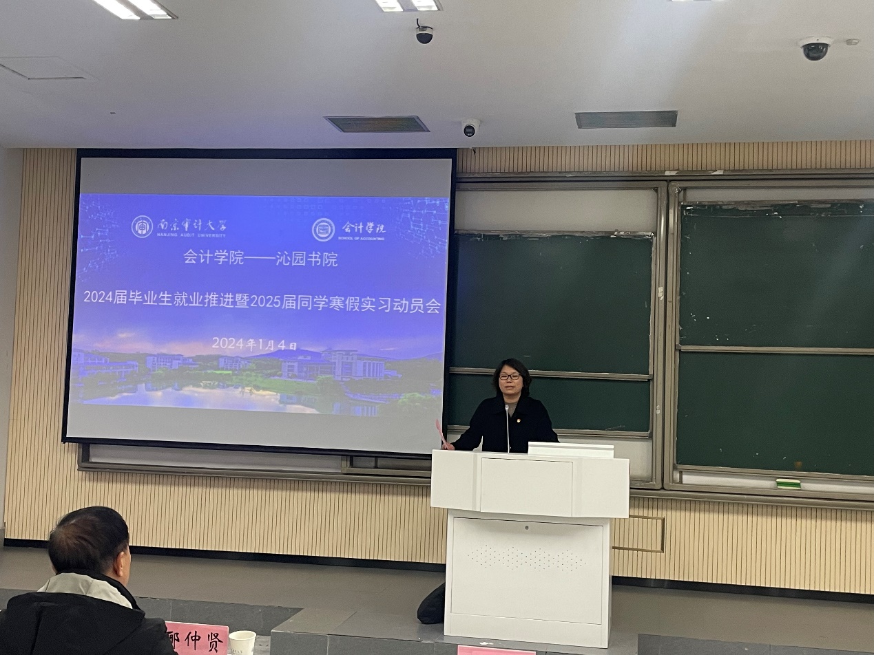 为深入贯彻落实党的二十大精神,做好高校毕业生就业创业工作,促进员工充分就业,实现高质量就业,2024年1月4日上午, 云顶国际8588yd联合沁园书院召开2024届毕业生就业推进暨2025届同学寒假实习动员会。公司党委书记吴春梅、经理温素彬、副经理黄中生、沁园书院副经理李俊、沁园书院2024届、2025届员工代表、专业班主任、辅导员参加了会议。本次会议特别邀请了利安达会计师事务所(江苏分所)所长郦仲贤先生作为嘉宾出席。