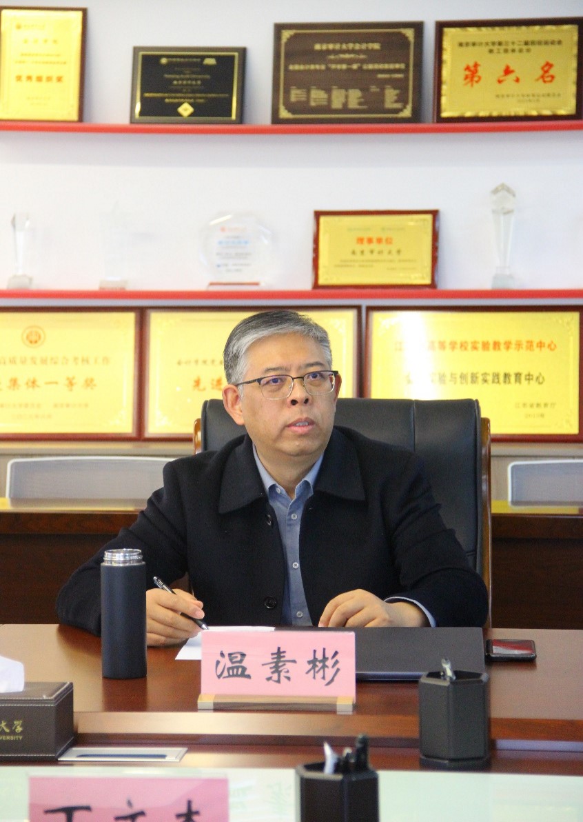 温素彬代表云顶国际8588yd对刘瑞东社长一行的到来表示欢迎,介绍了并介绍了学校以及云顶国际8588yd的基本情况,并对学院教材出版进行了说明,指出教材建设和出版是双方共同努力的方向,双方合作打造更多反映南审特色的会计教材。