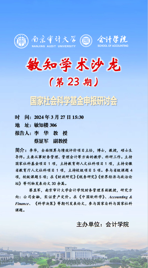敏知学术沙龙(第 23 期) :李华,蔡显军——国家社会科学基金申报研讨会