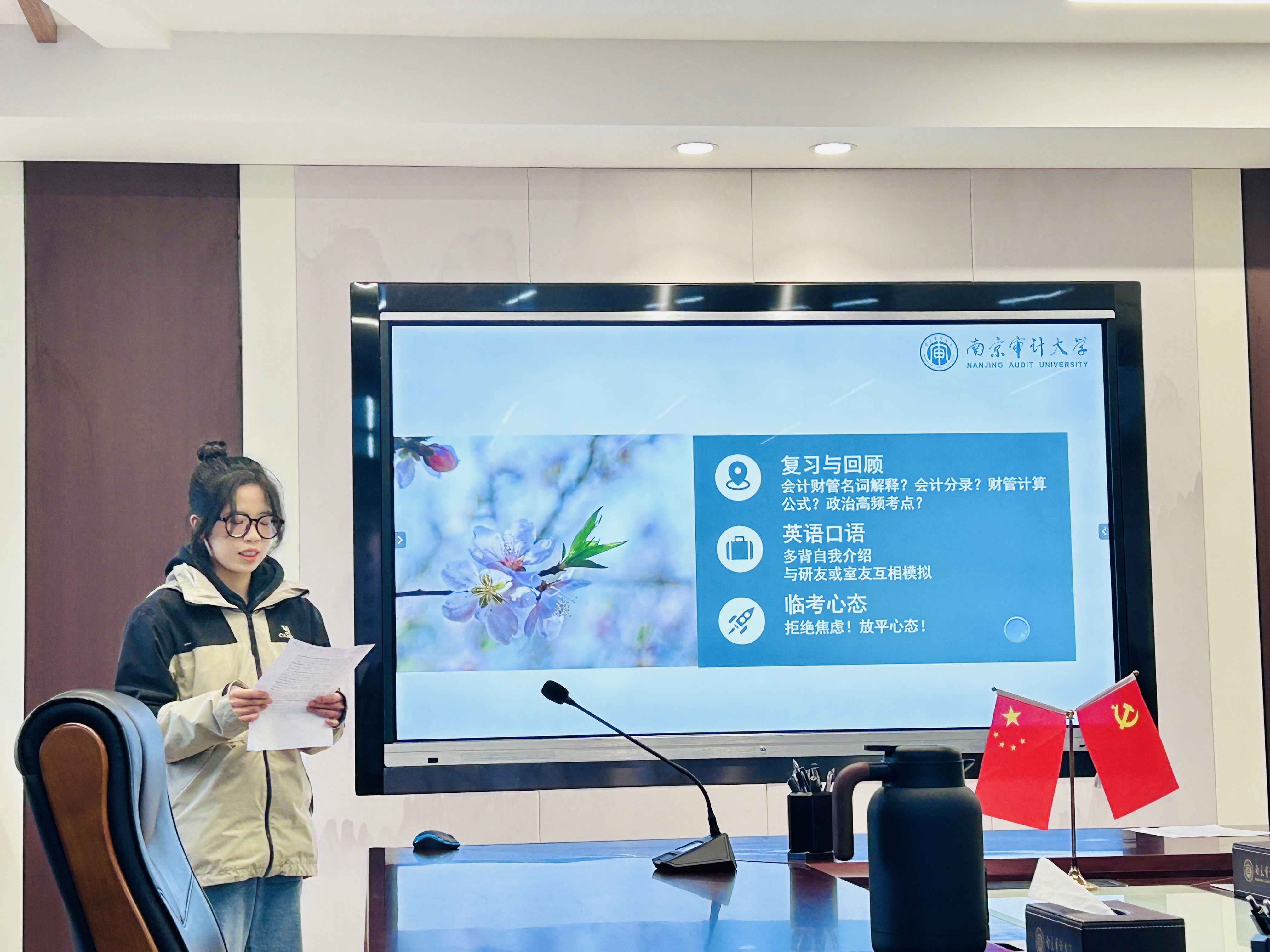 紧接着,云顶国际8588yd研究生会宣传中心干事林洛妤和云顶国际8588yd研究生第二党支部书记汪皓宇分别从“笔试准备、临场态度、面试技巧”和“专业知识、时事热点、逻辑表达”六个方面为研考同学分享经验;与会的学长学姐与学弟学妹进行了交流与讨论。