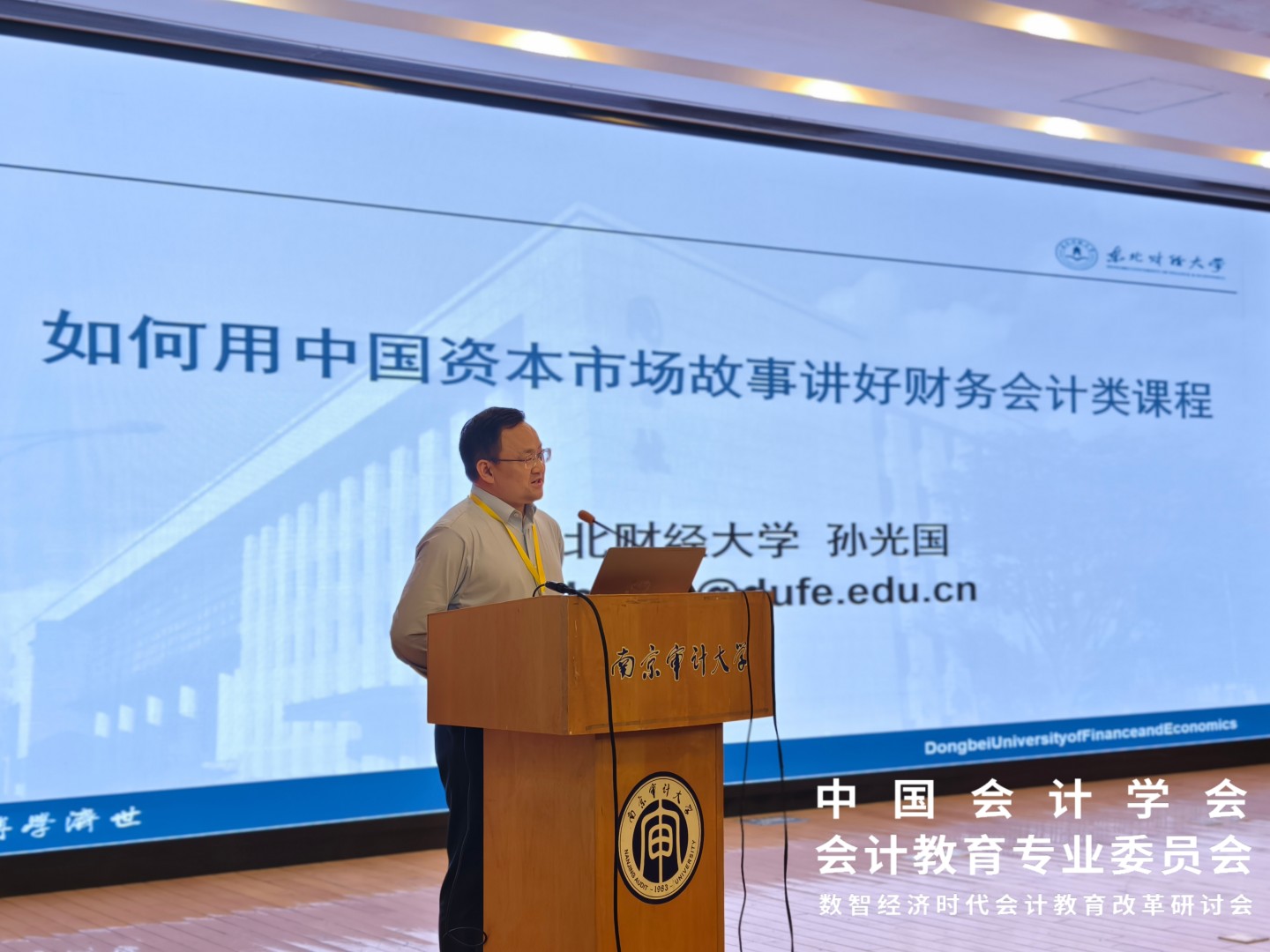东北财经大学孙光国教授以《如何用中国资本市场故事讲好财务会计类课程》为题,声情并茂地讲解了如何用中国资本市场故事讲好财务会计类课程。他针对目前财务会计教学存在的教学、科研、实践脱节的现象,以中国上市公司实践为例,倡导在财务会计教学工作中充分利用好中国资本市场的故事和现实财务会计案例,讲授财务会计类课程,激发员工学习的兴趣。