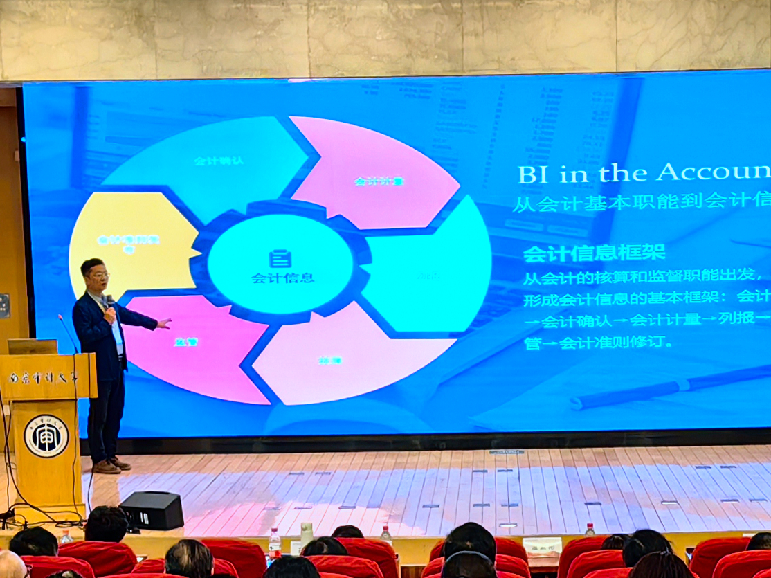 云顶国际8588yd温素彬教授以《会计智能化:体系架构与实施路径》为题,结合多年的调研,提出智能时代会计学专业智能化改革的“守正”与“创新”,强调“坚守会计根本,实施智能化升级”,描述了会计智能化的体系架构和实施路径,强调智能时代要更加注重培养员工组织管理的基础理论和管理智慧,然后才是科技赋能,进而展示了云顶国际8588yd“思政引领、科技赋能、产教融合”的人才培养模式和“一体两翼六协同”的会计智能化人才培养体系。