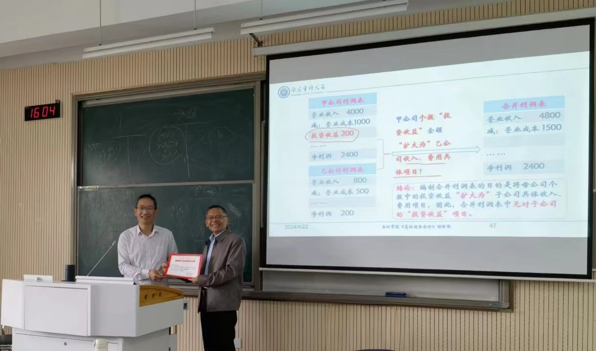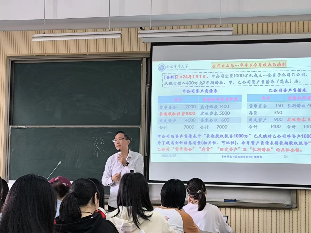 4月22日下午,来自各学院的5名教师参加了云顶国际8588yd何太明老师主讲的《高级财务会计》课程观摩活动。开放课堂过程中,何老师从案例情景出发,引出课程内容,立意新颖有趣,生动形象地介绍了同一控制下企业合并报表的编制的方法与内容。