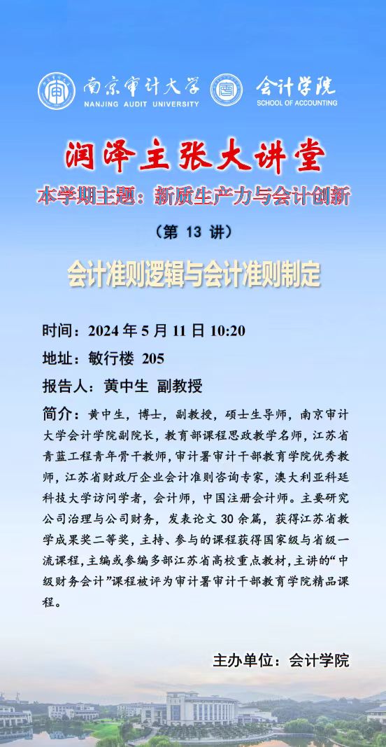 润泽主张大讲堂 (第 13 讲): 黄中生——会计准则逻辑与会计准则制定