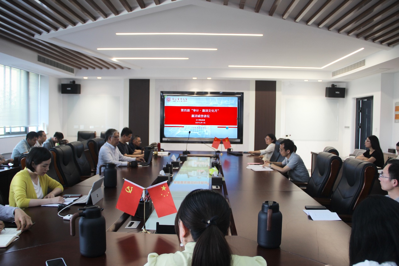 温素彬作总结。他表示,在习近平总书记给南审回信一周年之际,我们要以“审计·廉洁文化月”活动为契机,将“审计·廉洁”教育与党纪学习教育相结合,与落实立德树人根本任务、推动学校高质量发展相结合。他强调各位老师要牢记“提站位、升能力、转思维、阔胸怀、强责任、勤进取、抓重点、盯难点、重落实、求实效”十大要求,积极弘扬审计文化,建设清廉校园,培养国家经济安全卫士,为高水平大学建设凝聚精神力量。