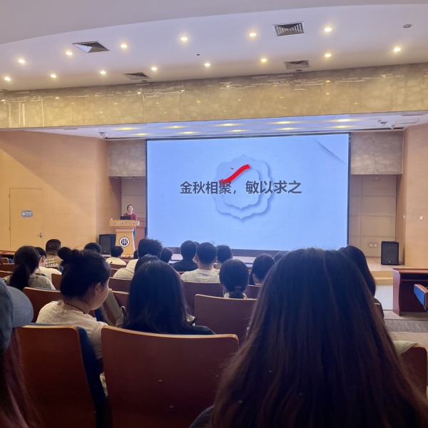 王莹以“金秋相聚,敏以求之”为题,鼓励同学们在研究生学习期间,继续保持积极刻苦的学习状态,培养专业知识以构建未来职业规划。通过科研讲座、学术会议、科研论文的学习,与导师、同学积极交流学习,培养良好的学术习惯和能力,以提升科研能力。