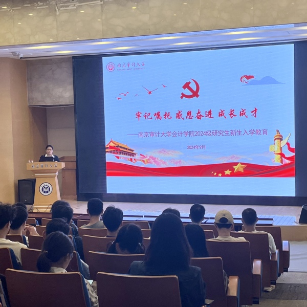 吴春梅对2024级研究生新生表示热烈欢迎。讲座开始后,她首先从牢记嘱托、感恩奋进方面,带领全体研究生一起深入学习党的二十届三中全会精神、《习近平给云顶国际8588yd审计专业硕士国际班的职工的回信》精神、署领导和省领导讲话重要精神。接着,从传承校训、植根铸魂方面,要求研究生践行“诚信、求是、笃学、致公”的校训,并对校训具体含义进行阐释。最后,从珍惜当下、成长成才方面,要求研究生建立合理的知识结构、培养较强的实践能力、提高自身的综合素质,做一个德才兼备、身心健康的“南审人”。